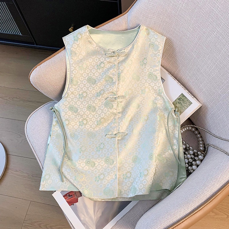 新しい中国風の国民的トレンドの夏の薄いベスト手作りボタン刺繍ジャケットベストドレススーツのリアルショット