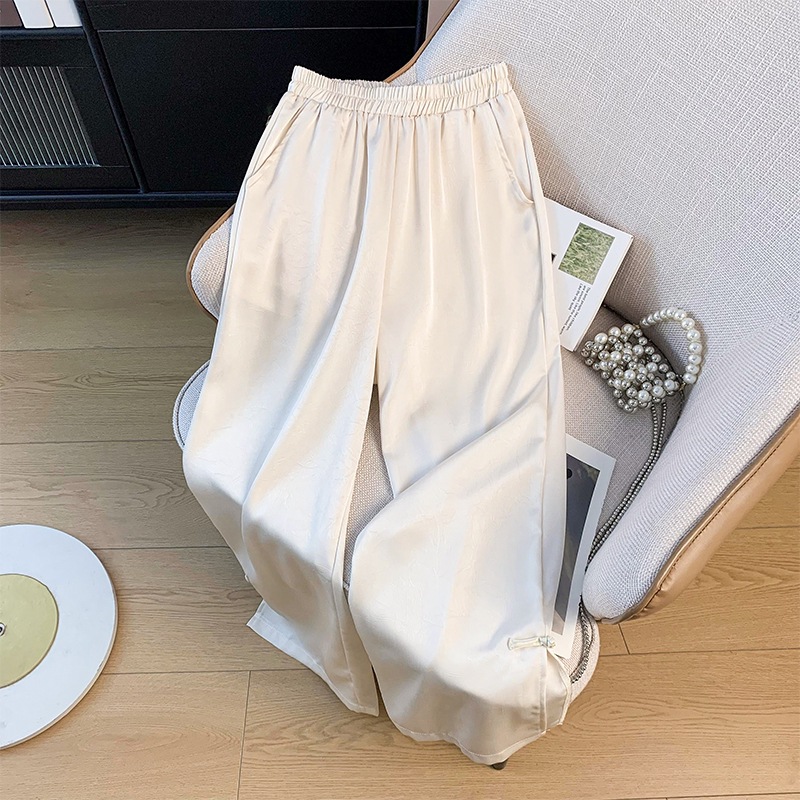 新中国風国風サテンジャカードワイドパンツ女性夏高腰ストレートカジュアルパンツ小背酢酸パンツ