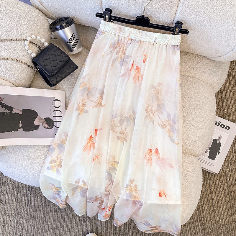 新しい中国風の鯉アプリコットのレトロな気質の漢服改良された中国風のプリントエスニックスタイルの古代の魅力の多用途スカートのリアルショット