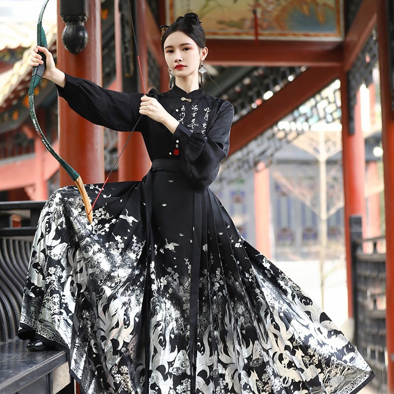 新商品春夏新中国式女性国風刺繍ジャカード立襟シャツ金馬面スカート日常漢服セット
