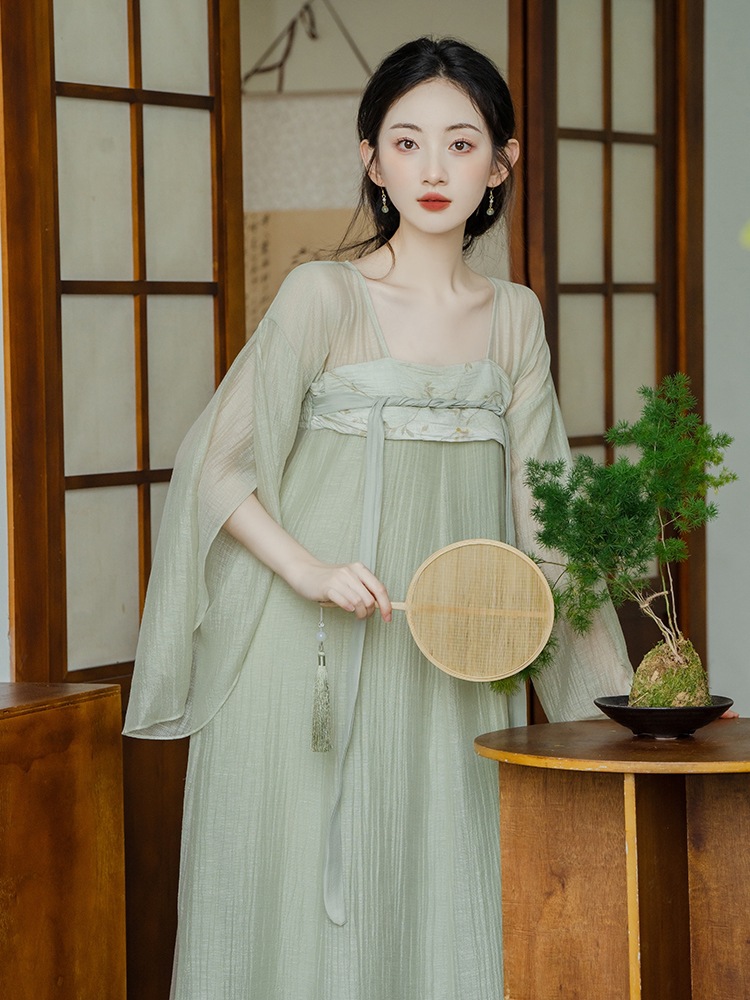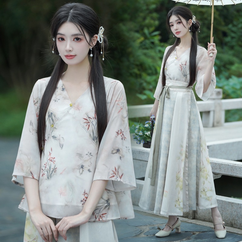 実拍レトロ文芸採桑女水墨画細帯スカート国風漢服日常通勤上着セット