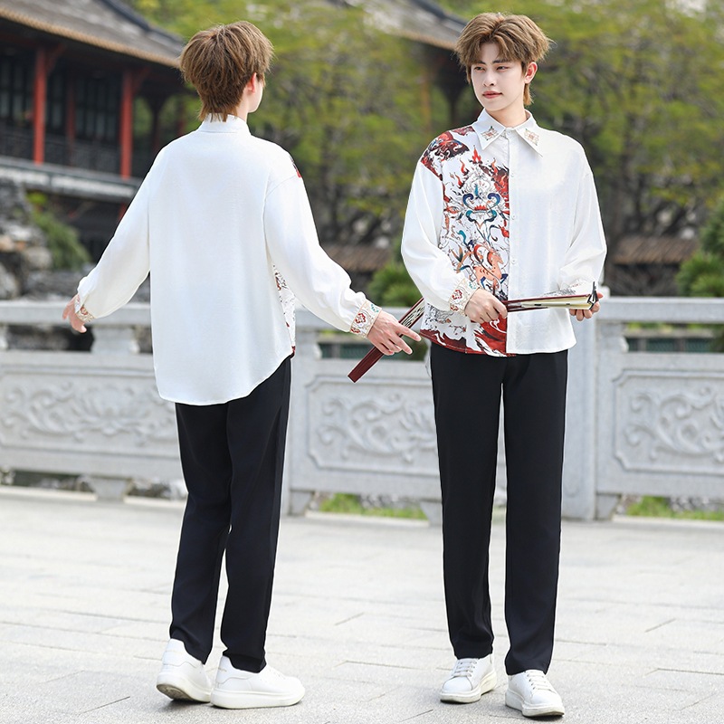 春夏新作オリジナルメンズ中国風刺繍スタンドカラージャカードシャツホットスタンピング馬面スカート漢服cpスーツ