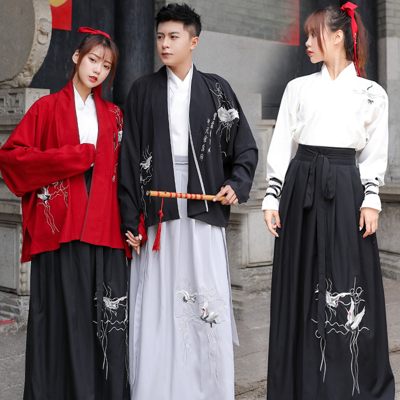 オリジナルの漢服重工刺繍の大袖のシャツはウエストのスカートの大きい女性のcpのカップルの服を結びます。