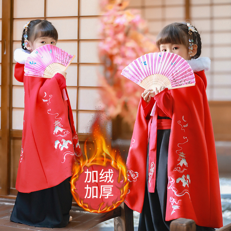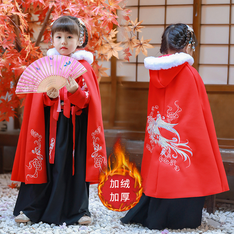 5860鳳求凤凰オリジナルスポット刺繍子供服漢服子供服子供服冬服ベルベット厚いマント