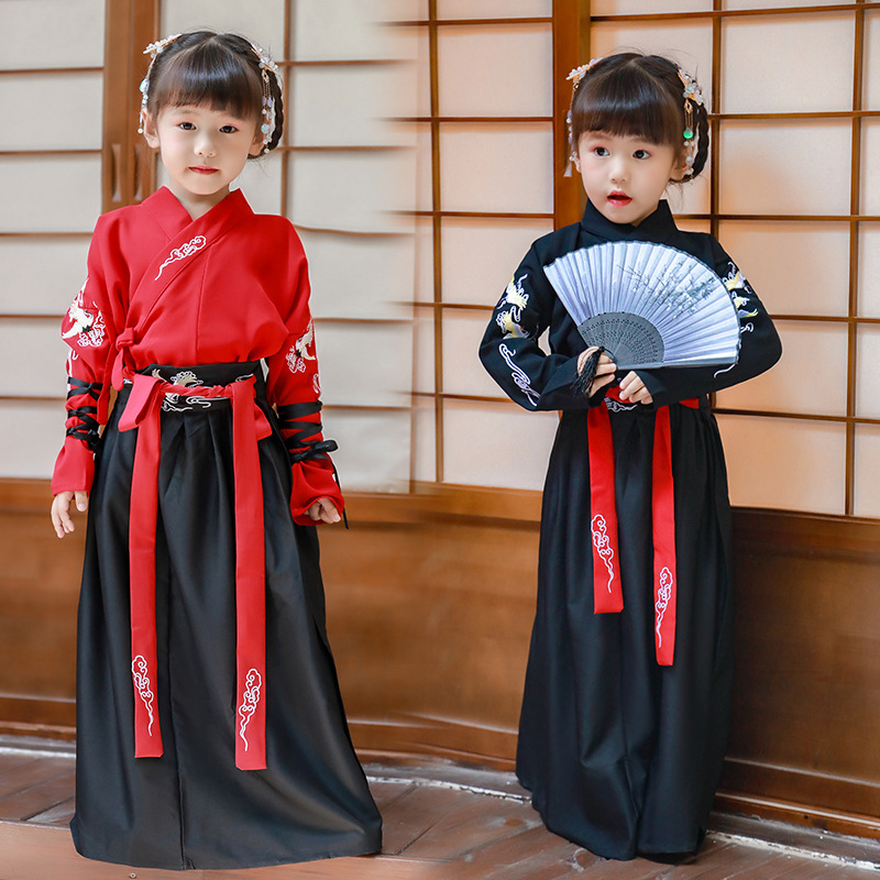 5868オリジナル刺繍子供服漢服子供男女赤ちゃんタイプ分離式カップルcpセット演技服