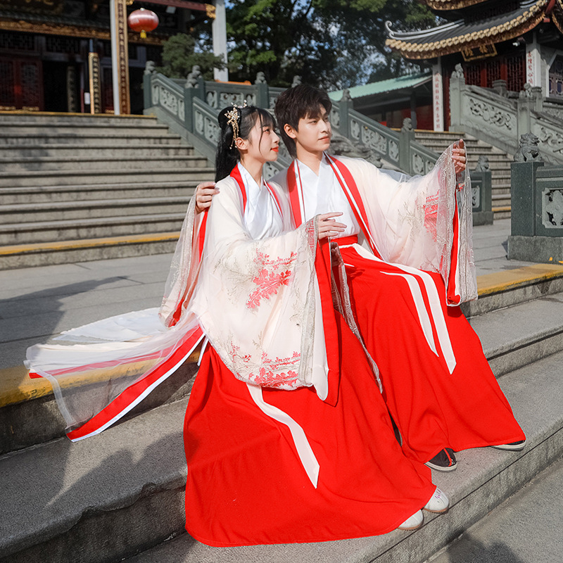 実拍中国風古剣奇譚大交領斉腰スカート男女cpセット古剣漢服