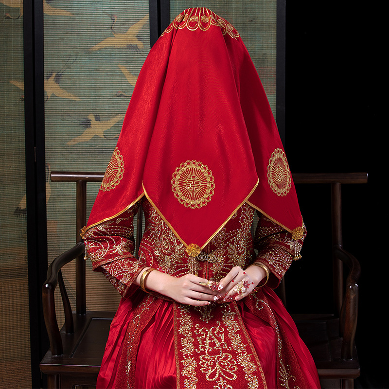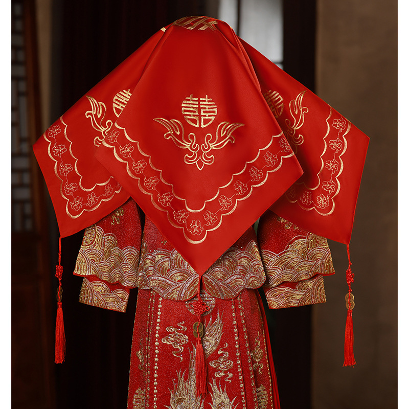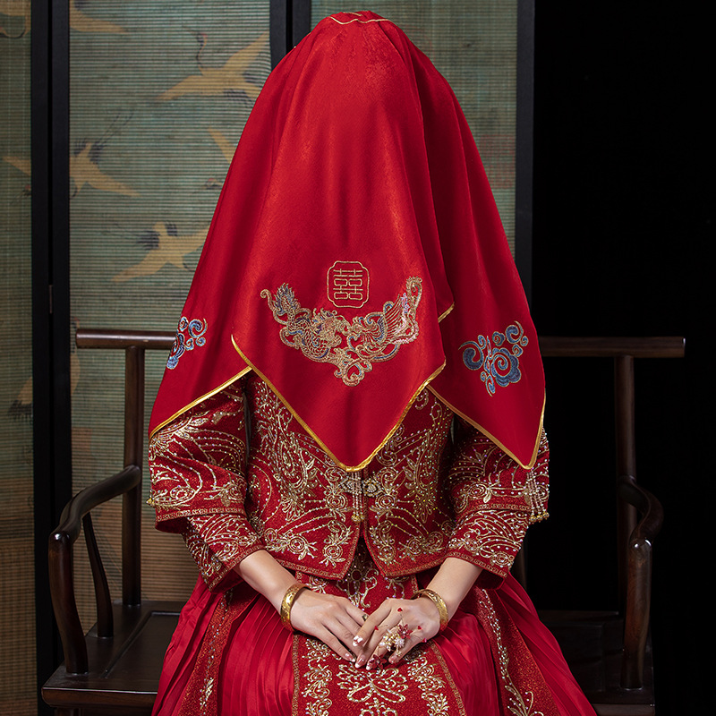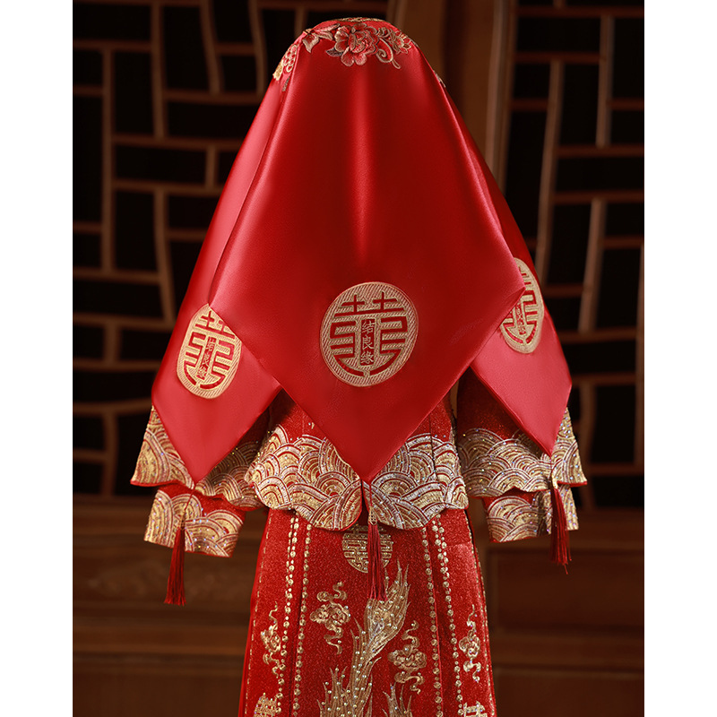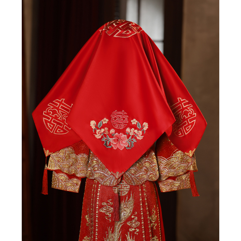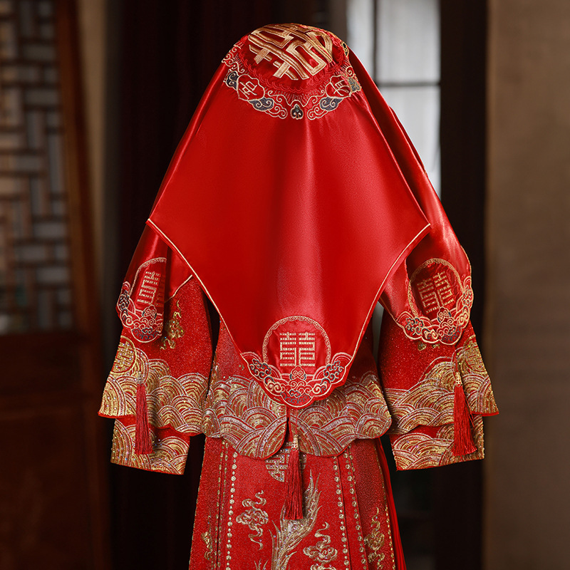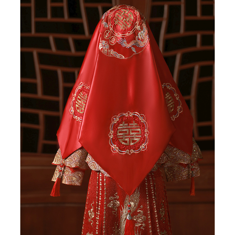 花嫁の結婚の赤い蓋の頭の2023高級の嫁入りの頭の復古の刺繍の赤い秀イネの服の喜パの中国式の結婚式