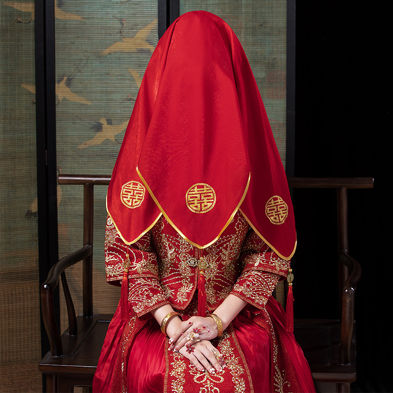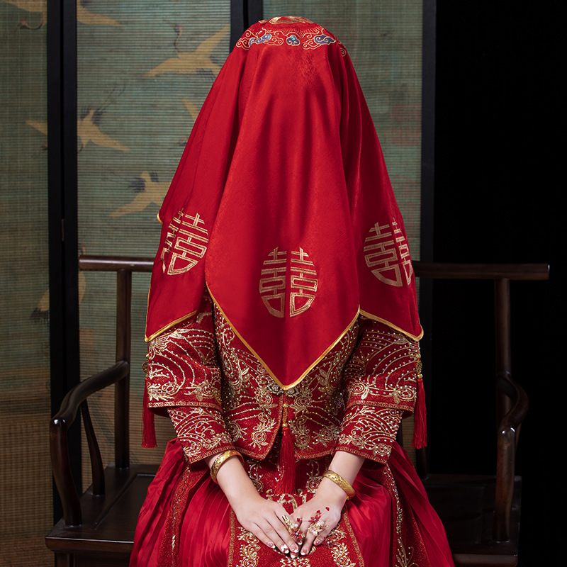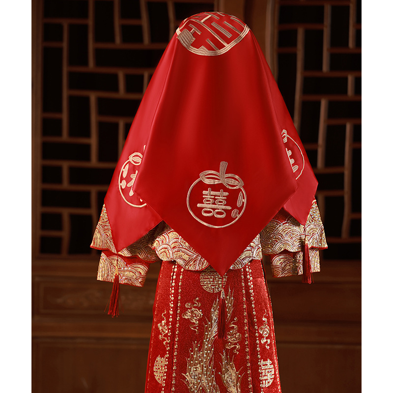 花嫁の赤い蓋の頭の2023結婚の中国式の結婚式の赤い高級の嫁入りの蒙頭のスカーフの喜パ秀禾の漢服のベール