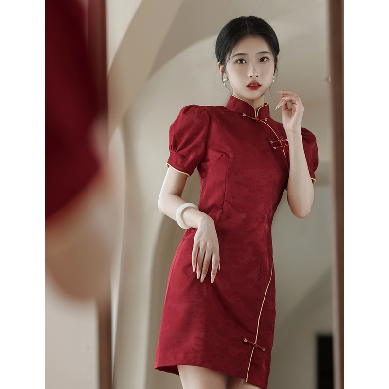 敬酒服花嫁改良チャイナドレス2023年新型小柄新中国式赤い結婚婚約ドレス夏