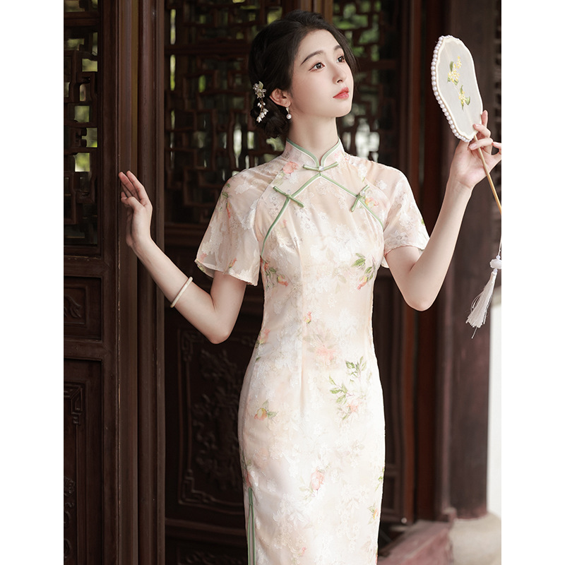 洛士博のピンクの少女の心配事の復古民国のチャイナドレスの女性の夏の若いタイプの少女は日常的に長いタイプを着ることができます。