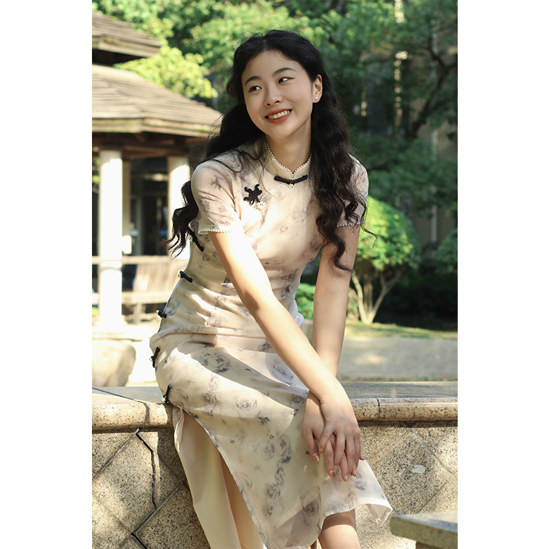 新中国式「半城煙沙」日常改良気質の若いタイプの少女の新しいチャイナドレスのワンピース夏
