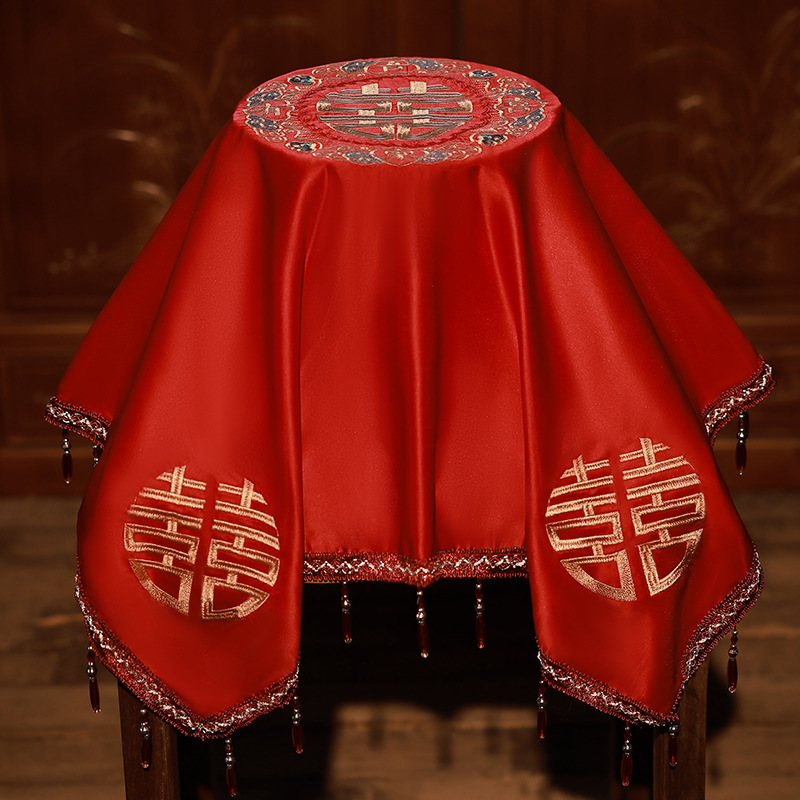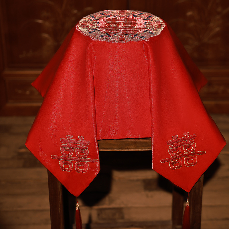 花嫁の結婚の赤いふたの2023高級の嫁入りの頭巾のサテンの刺繍の赤い秀イネの服の喜パの中国式の結婚式