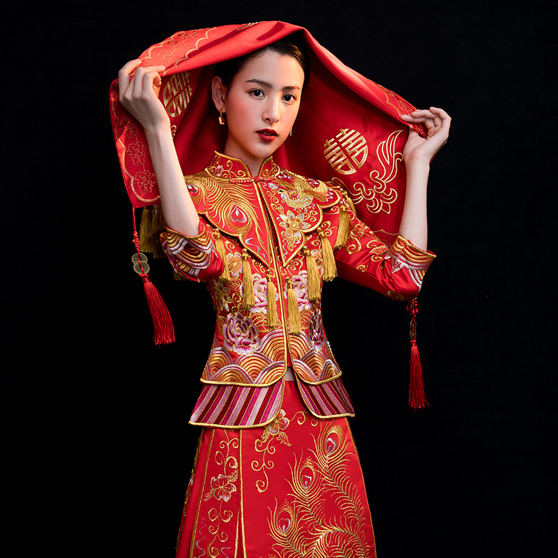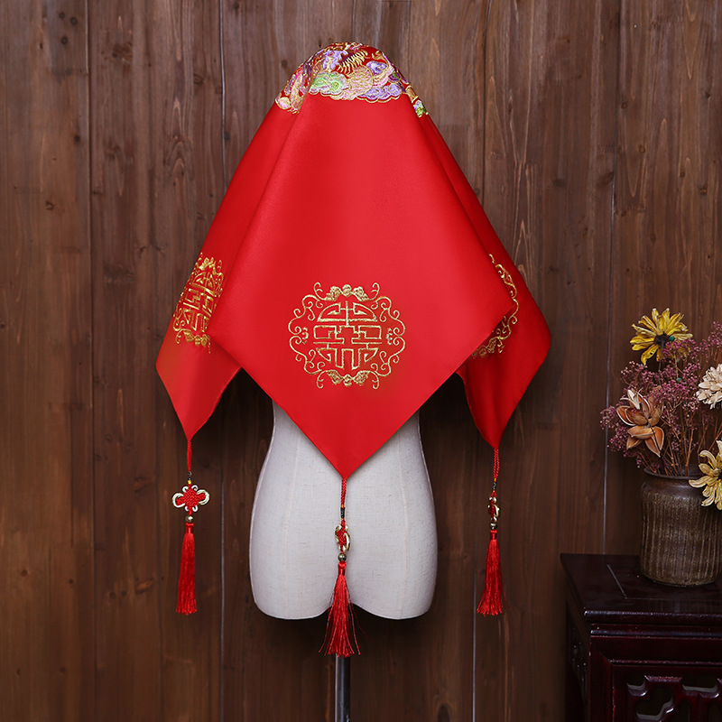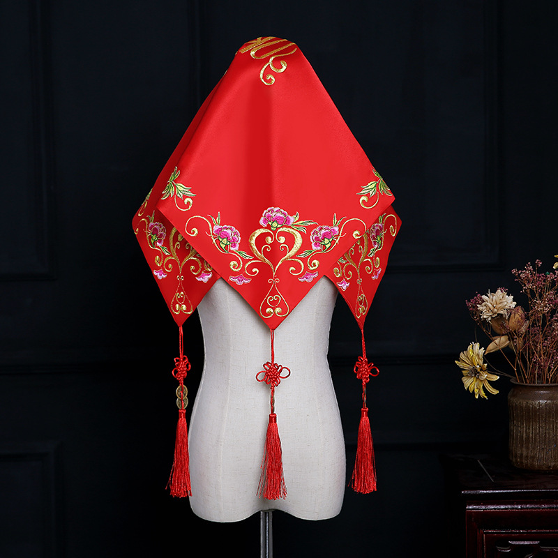 大型の赤いカバーの花嫁中国式刺繍結婚秀イネ服高級カバーのベール流蘇復古結婚式アクセサリー