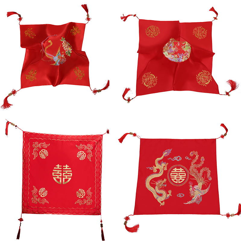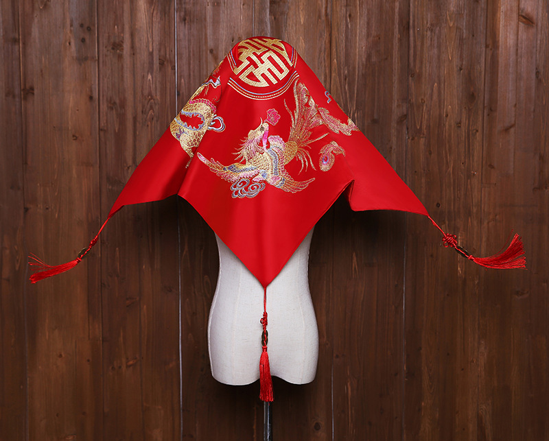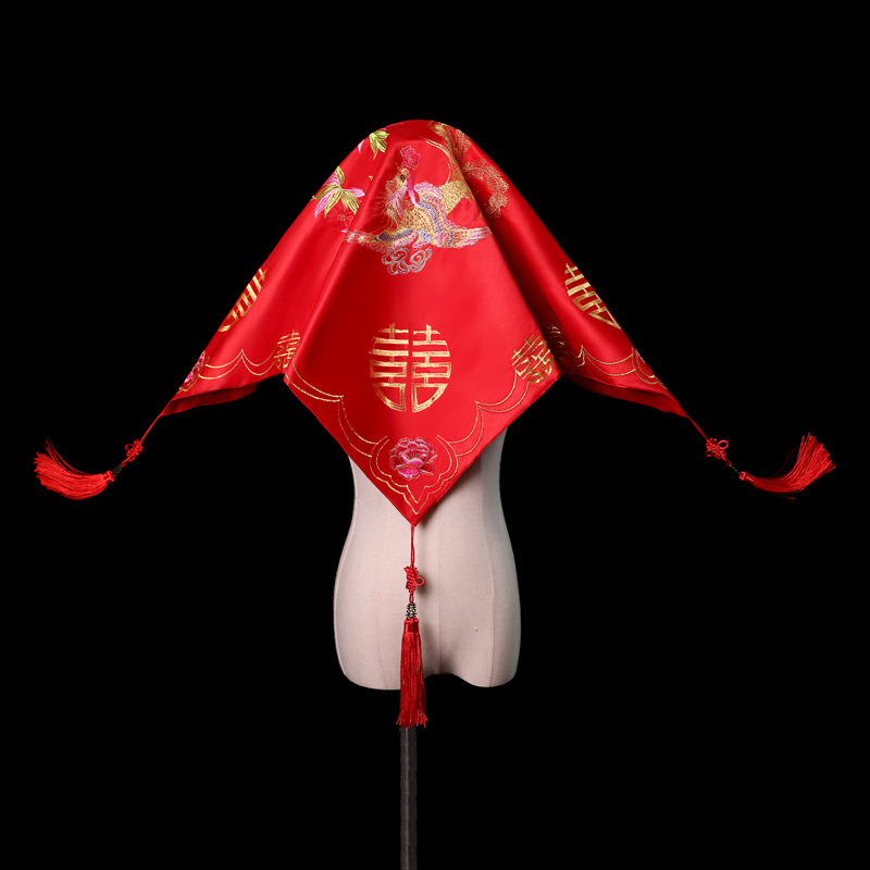 赤い帽子の花嫁の中国式刺繍の結婚用品の赤い頭の布の結婚祝いのベールの結婚式の喜パ竜鳳の頭