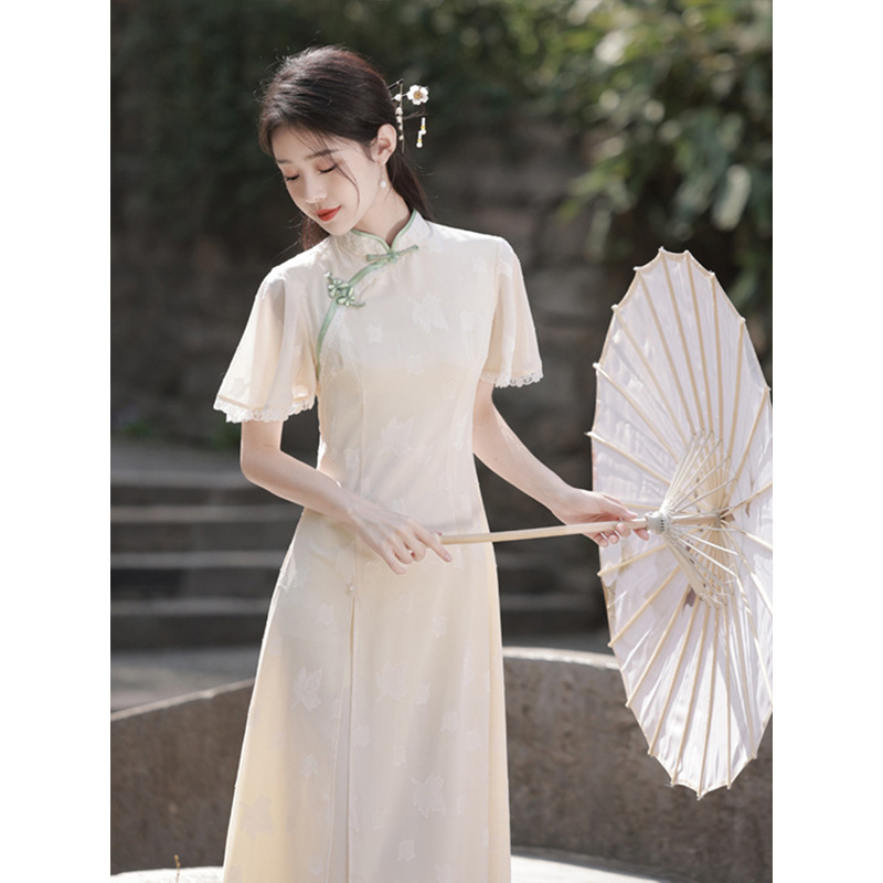 オーダイはチャイナドレスの女性の夏の新型2023年の若いモデルの気質を改良しました。