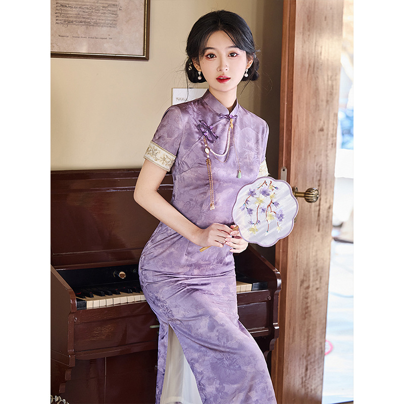 梅子色チャイナドレス2024新改良日常気質新中国式は通勤のオーダーワンピースを着ることができる