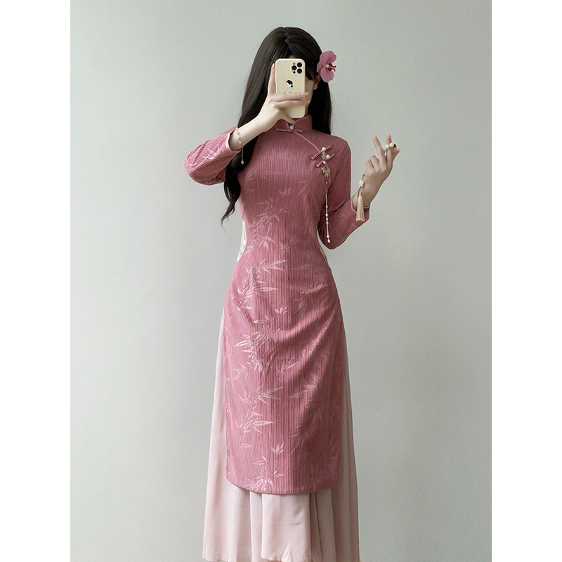 新中国式「三寸天国」日常改良レトロ国風長袖チャイナドレス新中国式秋冬ロングスカート