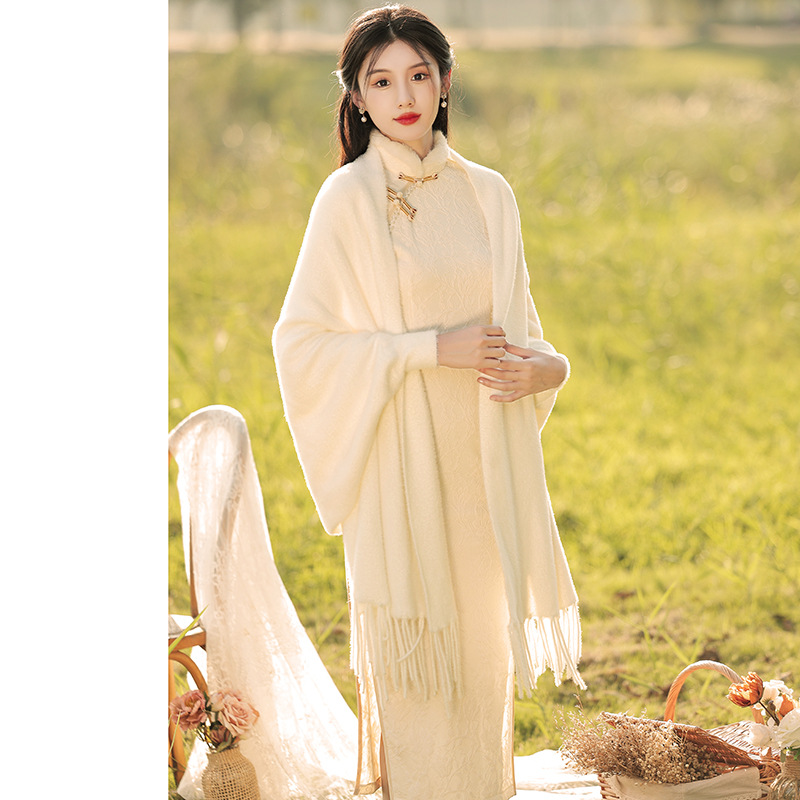 レトロな民国風の白いチャイナドレスのマント2022年の新しい秋の暖かい快適なシンプルな冬