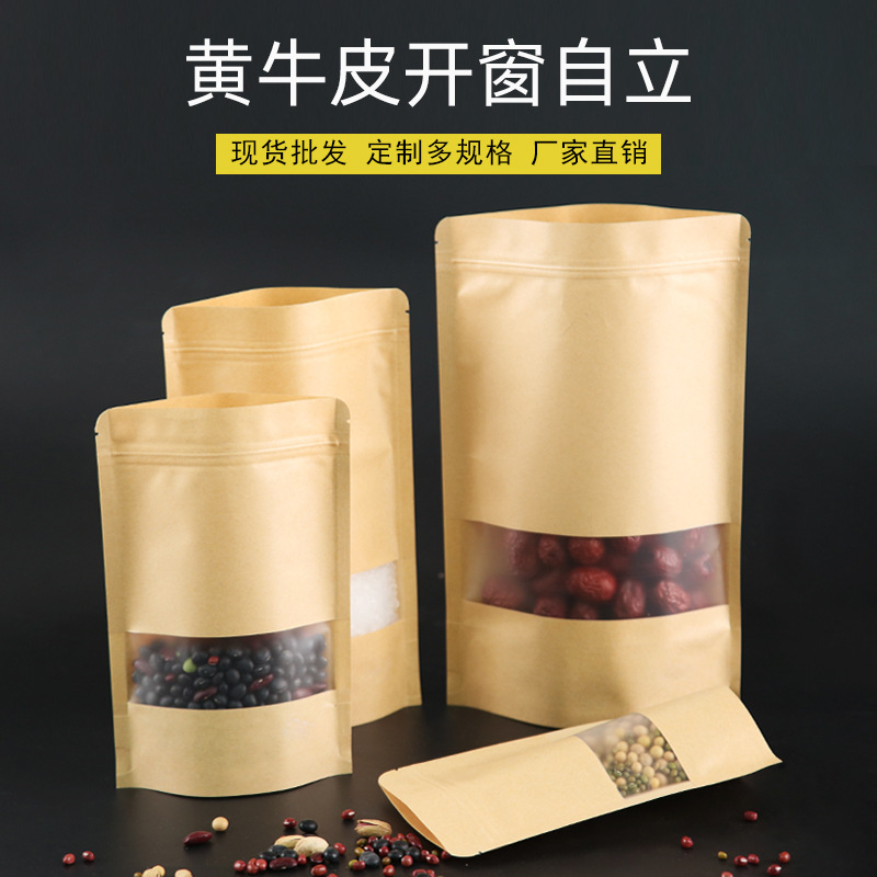 窓開けクラフト紙袋茶葉ナッツ包装袋クラフト紙自立自封袋ドライフルーツ類密封袋食品袋