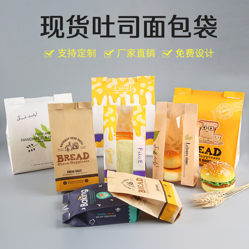 窓を開けた透明なベーキングパントースト袋クラフト紙袋西点淋膜包装袋防油包装紙袋