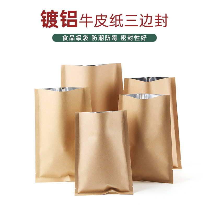 クラフト紙三方シール袋、茶食品包装袋、平口マスク袋、アルミ箔圧縮鮮度保持袋、在庫あり