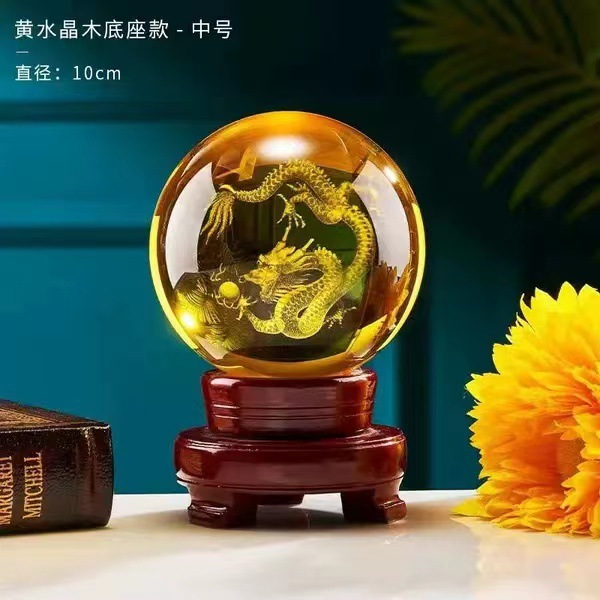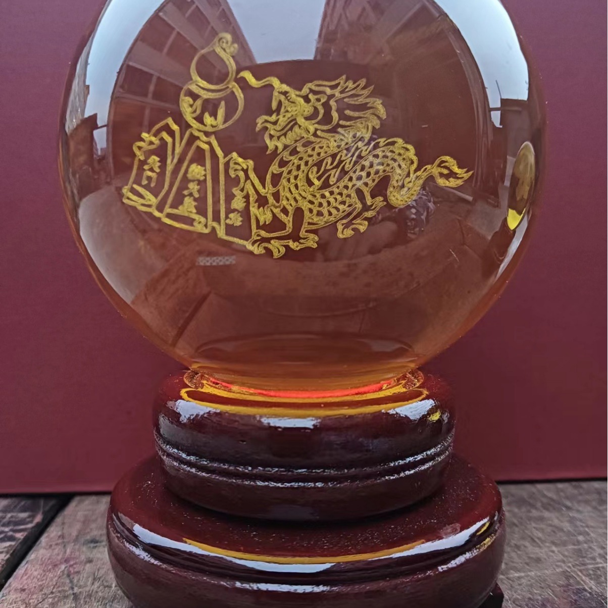 龍晶球輸送置物高級龍年水晶球黄色十二生肖球プレゼント