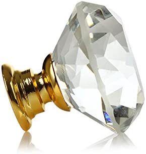 家具金物透明水晶取っ手 | 色とりどり水晶ダイヤモンドガラスドアハンドル30mm金色黒色ベース