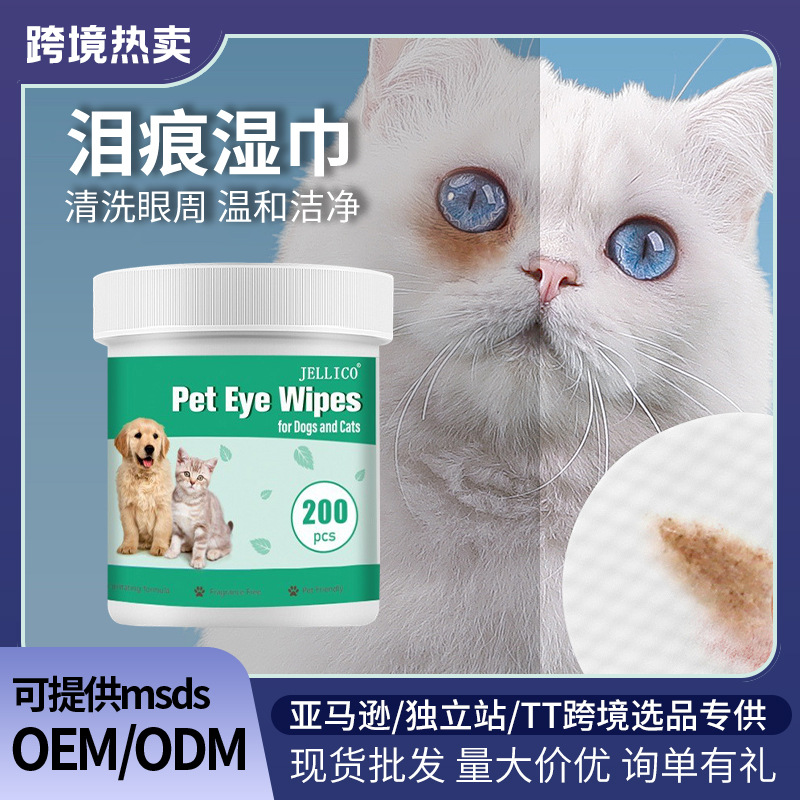 犬猫用の涙やけ、目垢、目汚れを除去するための、国境を越えたペット用目拭き(ビションフリーゼ、ポメラニアンなど)