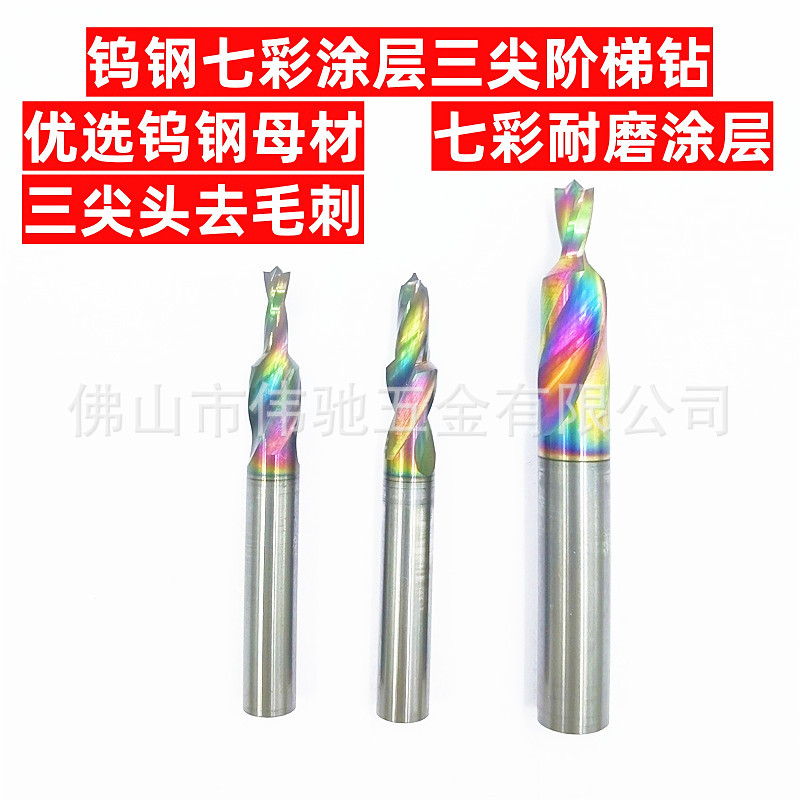 タングステン鋼七彩コーティング三尖アルミ用階段ドリル階段面取り頭90度ドリル放熱器バリ取り