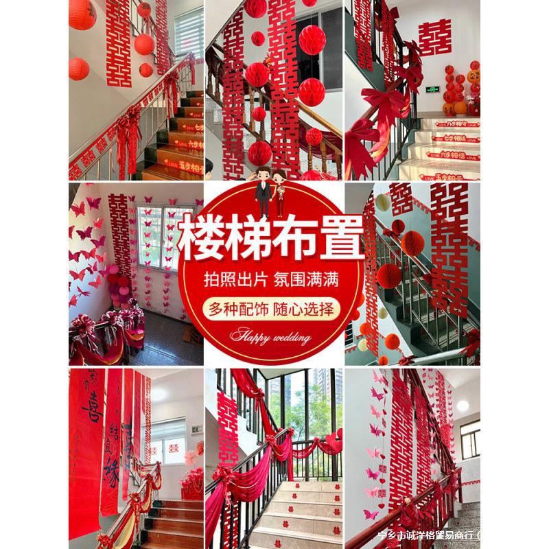 結婚階段手すり装飾花喜字ストラップ男性女性結婚部屋配置装飾結婚用品大全