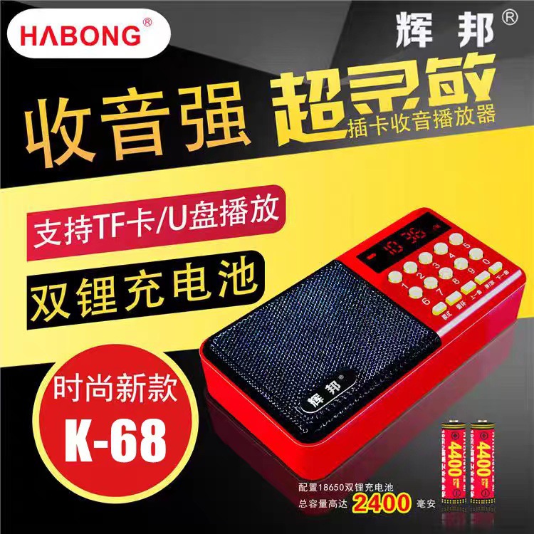 輝邦K68 FMラジオ デュアル電池式プレーヤー 高齢者向けプレーヤー カード対応 演歌機 ポータブルラジオ