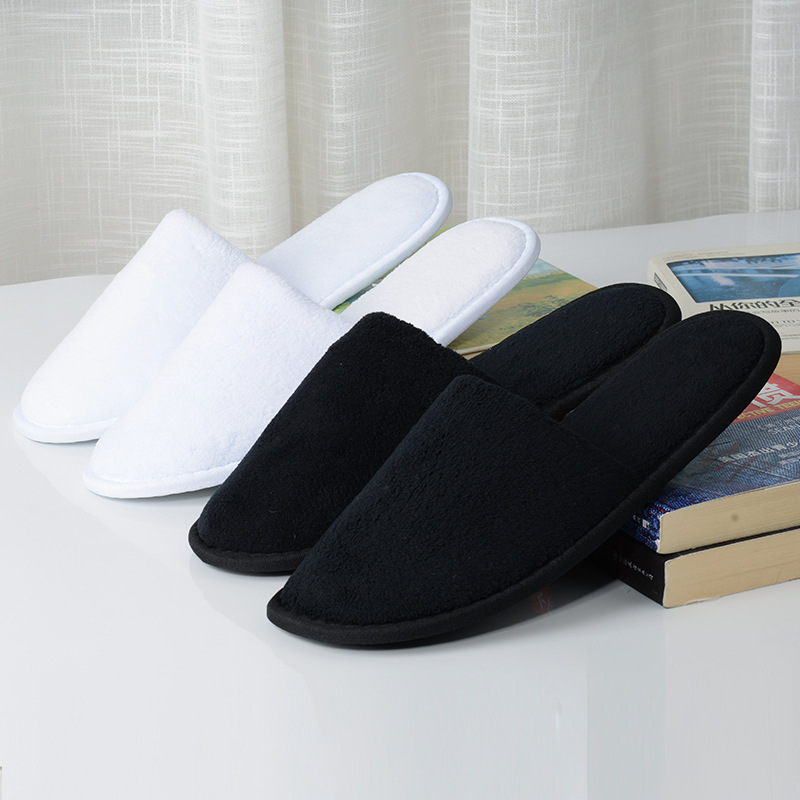 ホテルの使い捨て用品サンゴのベルベットの使い捨てスリッパ旅行者スリッパ黒と白の013