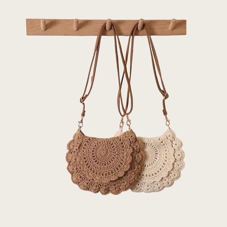 クロスボーダーの人気レースの斜めショルダーの綿の糸の編み物は透かし彫りのシングル肩の草を包んでリゾート風のビーチのカバンを編みます。