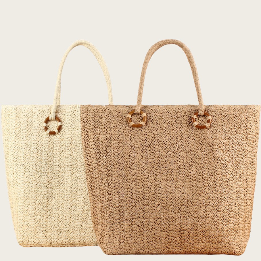フランス風草編み大容量手提げショルダーバッグ森系リゾート風ファッション編みレディーストートバッグ