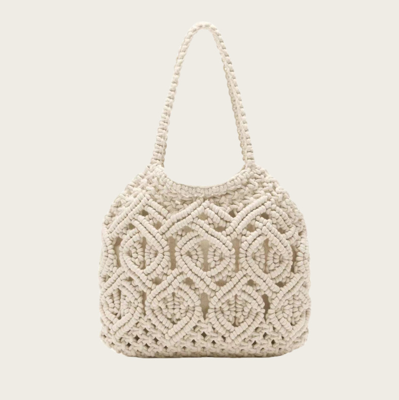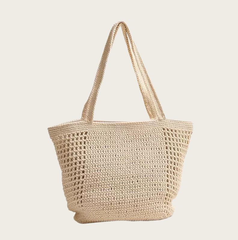 新しい中空ショルダーわらバッグ、リゾートスタイルのビーチバッグ、多用途のレディースバッグ、レイジースタイルの大容量綿糸織りバッグ