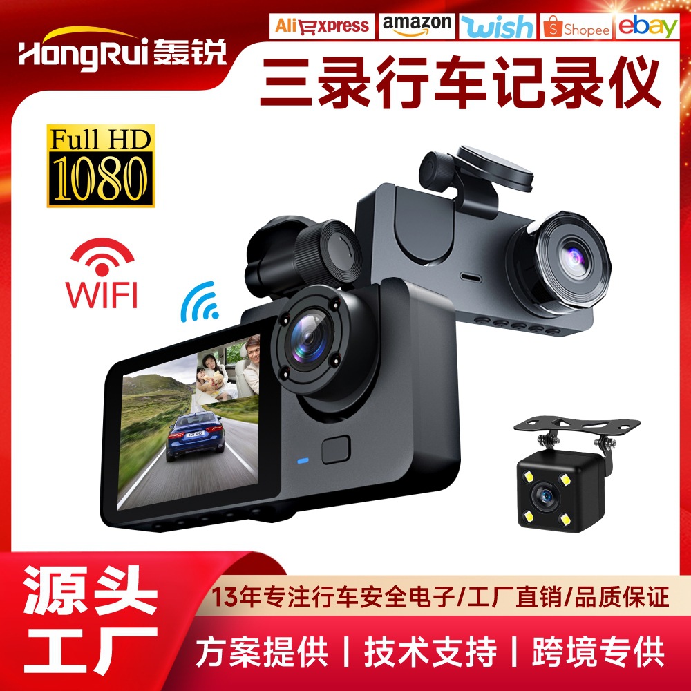クロスボーダーDvr 2インチWiFi 3レンズ車載hdドライブレコーダーバック映像ダッシュカメラ