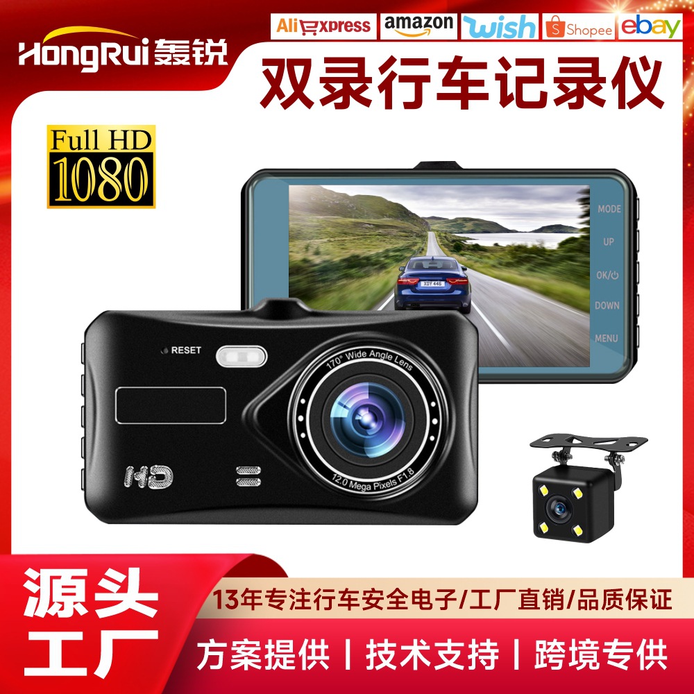 国境を越えた新型4インチ大画面hd 1080p車載ドライブレコーダーダブルテープバック映像cardvr
