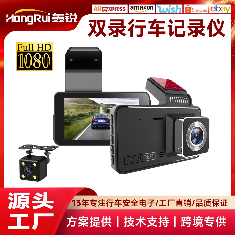 Temu/SHEINクロスボーダー新型起爆ドライブレコーダー3インチ高精細1080p前後三録駐車監視