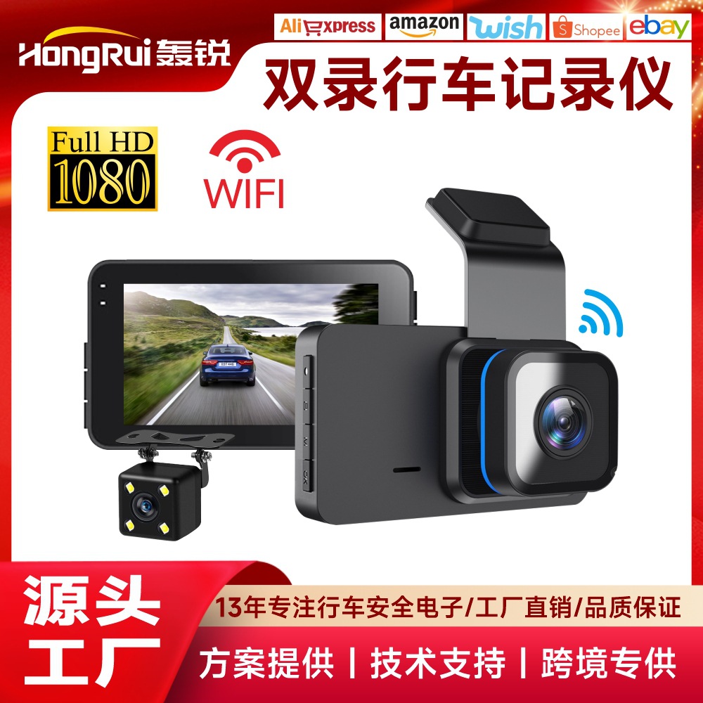 新型車載hd 1080P 3インチドライブレコーダwifi付きダブルレンズ前後ダブル記録ダッシュcam