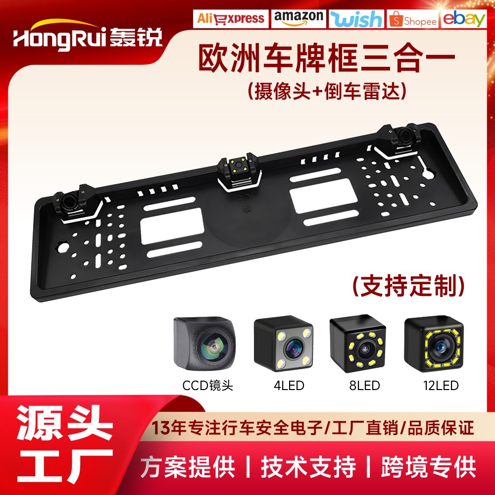 ヨーロッパのナンバープレートフレーム三合一レーダーバックカメラ4led車載バックカメラ車載後視映像