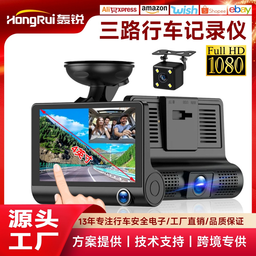 4インチドライブレコーダhd三録三レンズ自動車車載隠しレコーダーdvr