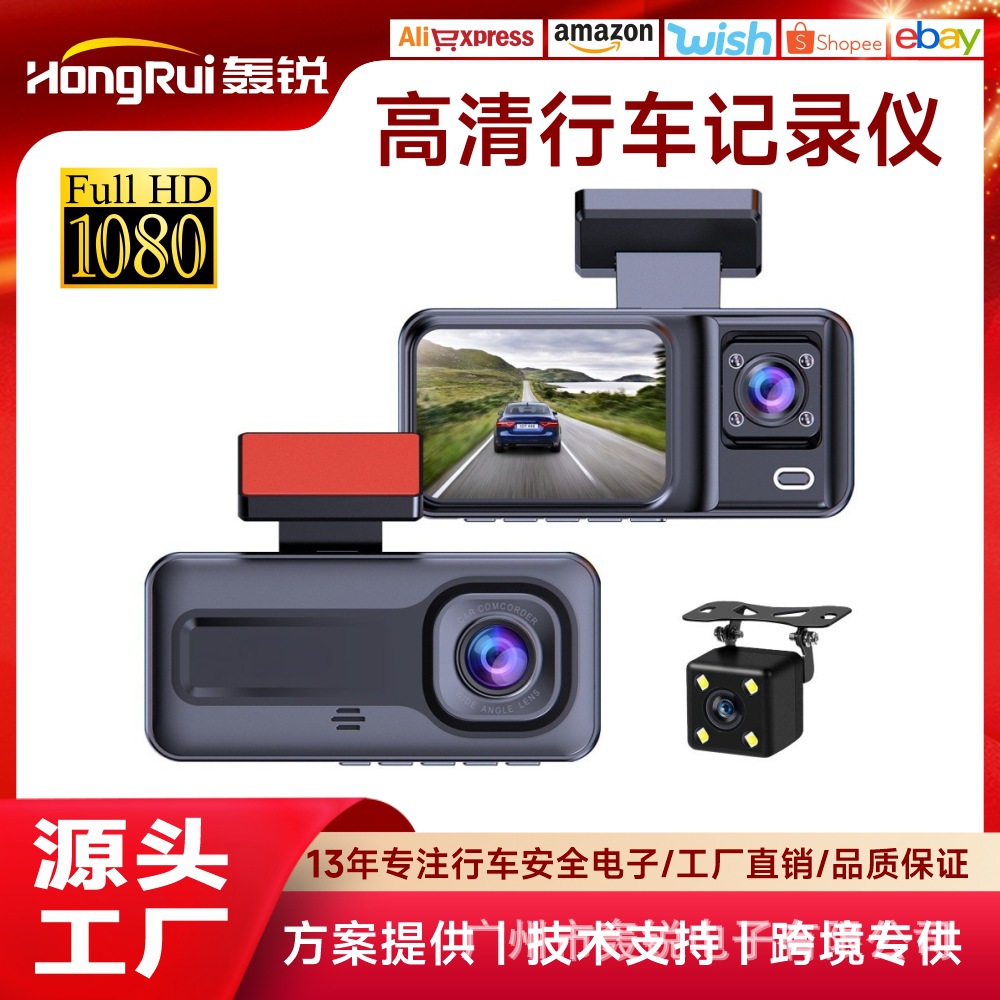 クロスボーダー赤外線ナイトビジョンドライブレコーダー HD 1080P 3 レンズ反転ビジュアル 3 レコード隠し卸売