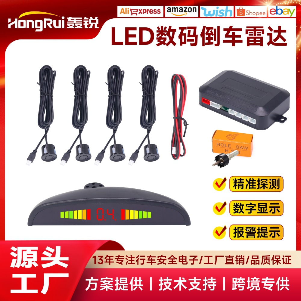 バックアップレーダー 4 月の三日月音声ビープ音前後統合パーキングレーダー LED 小型三日月バックアップレーダー