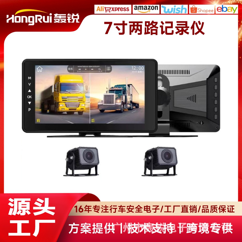 7inch 1080P AHD バス フォークリフト セキュリティ モニター IPS デュアル レンズ 4 チャンネル ビデオ