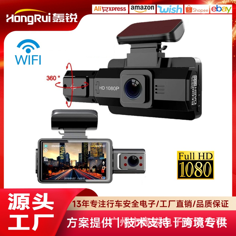 3inch 超クリア IPS スクリーン HD フロントとリア 3 レコーダー携帯電話相互接続 WiFi ドライブレコーダー画面付きクロスボーダーホットセール