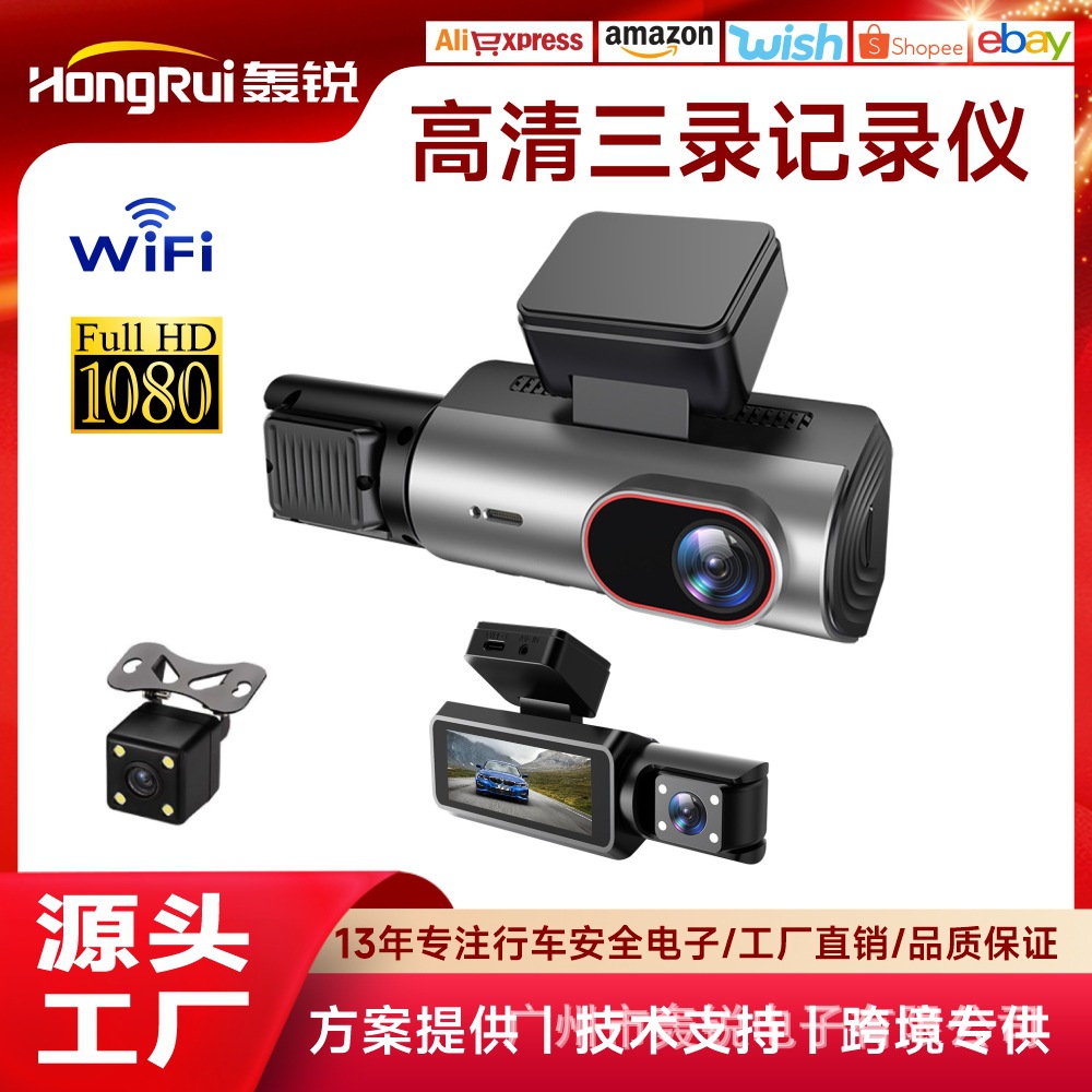 クロスボーダー暗視ドライブレコーダ高精細1080p車前車内車後2インチ3レンズ車載カメラ