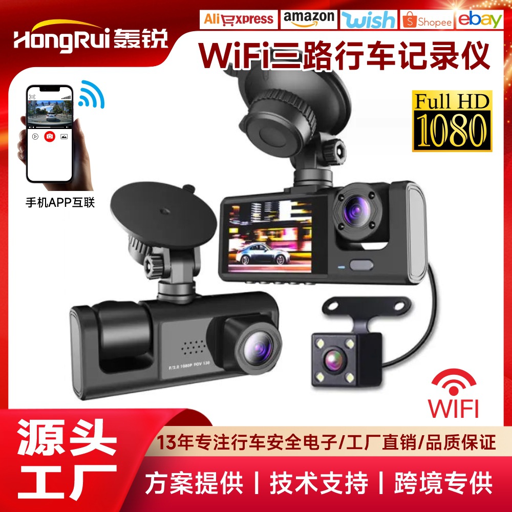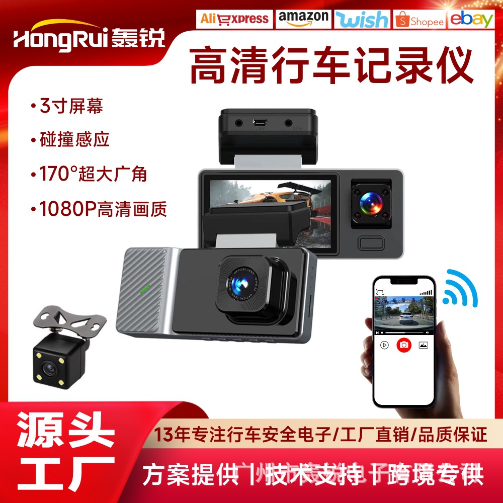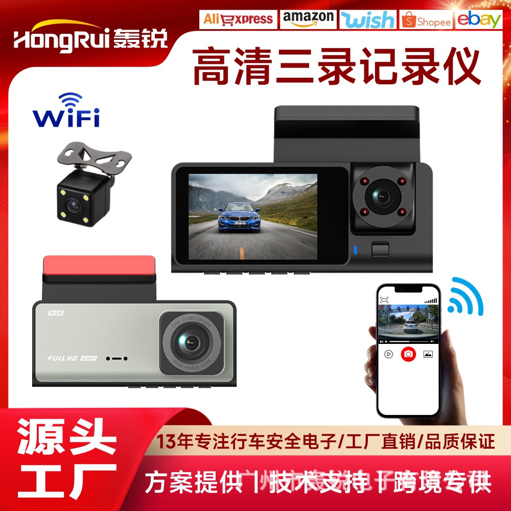 新しい熱売1080p三録ドライブレコーダーWiFi接続ハイビジョン夜視広角バック映像卸売り