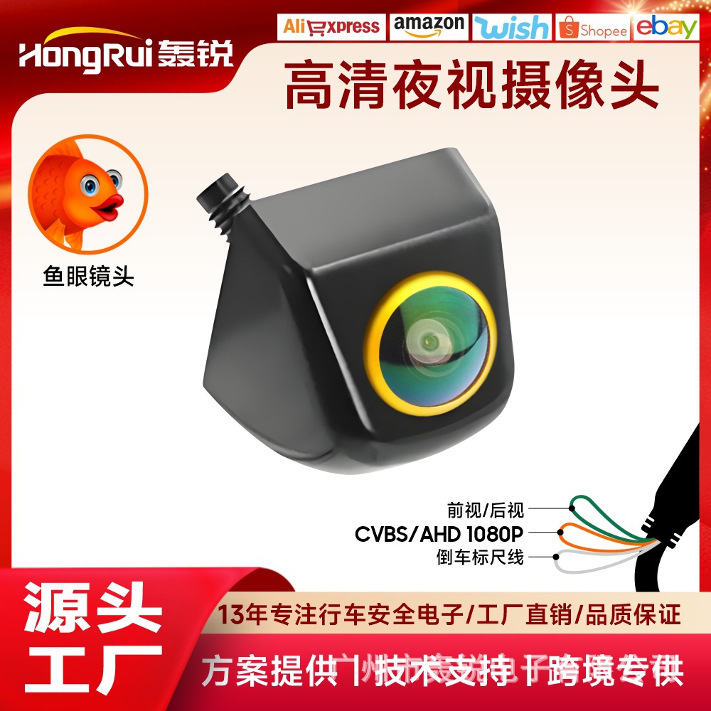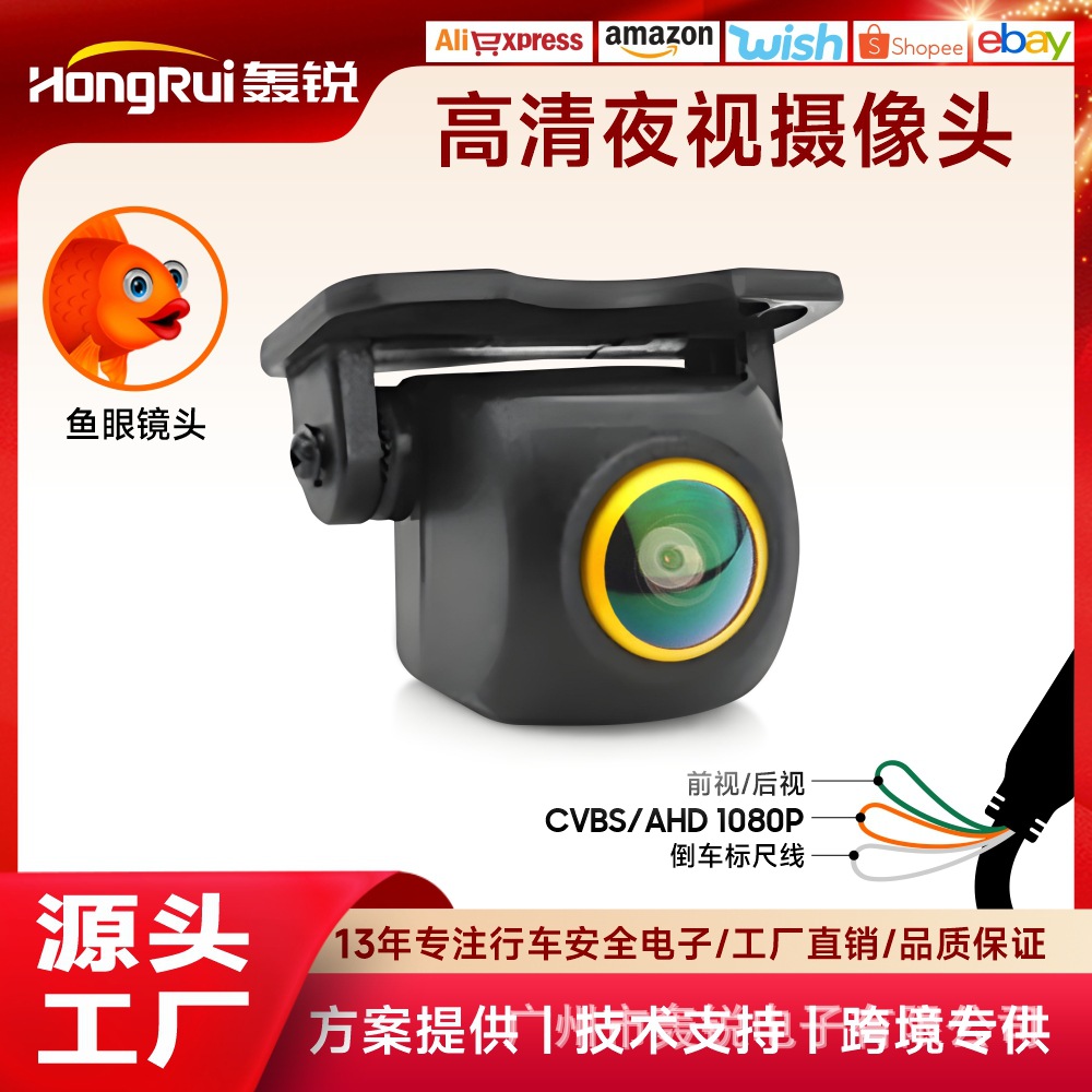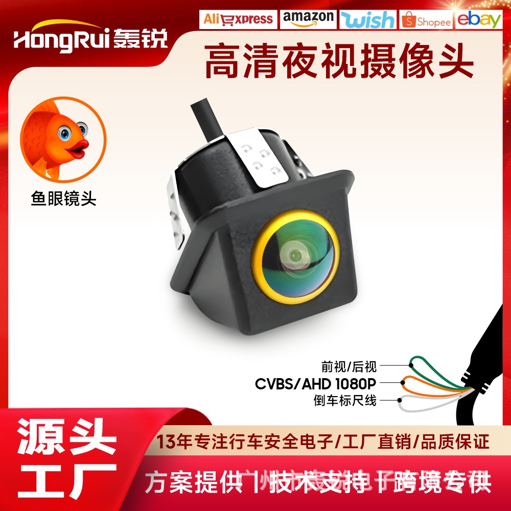 新型金色魚眼三切高精細夜視自動車カメラ車載外掛通用カメラバック映像