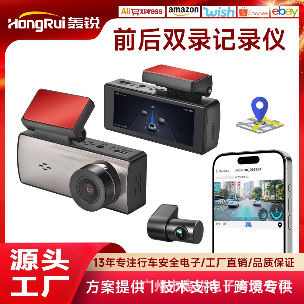国境を越えた新しい3inch年式ドライブレコーダー、超高画質、インストール不要、ナイトビジョン、GPS、フロントとリアのデュアルレンズドライブレコーダー