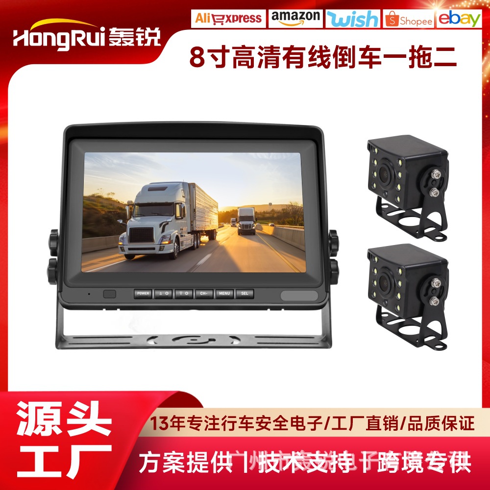 8インチハイビジョンAHD有線一牽引二カメラトラック車載死角ディスプレイセット防水バック映像